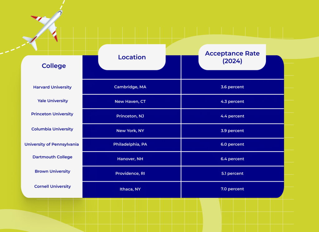 Where each school is located also makes a big difference in your experience. Columbia and UPenn are in big cities, which means tons of opportunities for internships, networking, and city life. On the other hand, places like Princeton, Dartmouth, and Brown are in smaller towns, giving you that close knit campus feel where everyone knows each other and life is really focused on campus. When thinking about where to apply, it is not just about prestige it is about what kind of environment you want to be in for the next few years