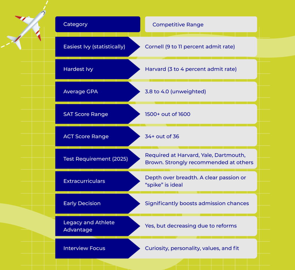 Ivy League requirements are not written in stone but are understood through patterns of admitted students. Strong academics, top standardized test scores, exceptional extracurriculars, glowing recommendations, and essays that tell a deeply human story all matter. But more than anything, admissions officers look for authenticity and potential impact.